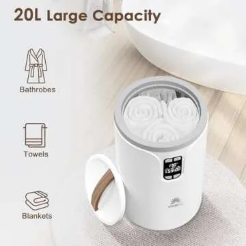 VOUKOTA Towel Warmer, 20L Towel Warmers for Bathroom with LED Display for Time and Temperature, Bucket-Style Warmer with Delay Timer 0.5-24H, Heating Time 30/60/90 Mins, Child Lock