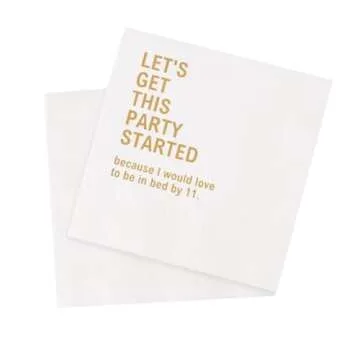 VOWFOO Let's Get This Party Started Because I Would Love To Be In Bed By 11 Funny Quotes Cocktail Napkins for Birthday Girls Night Holiday Housewarming Reunion Party 100Pcs 4.5 x 4.5 2-ply (By 11)