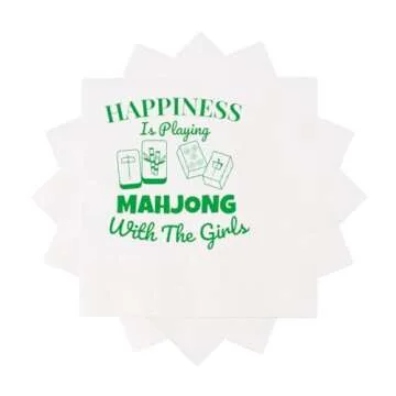 VOWFOO Mah Jongg Mahjong Cocktail Napkins 50Pcs Happiness Is Playing Mahjong With The Girls Napkins For Casual Gatherings Game Nights Bridal Showers Birthday Party 5 x 5 2-ply (Mahjong With Girls)