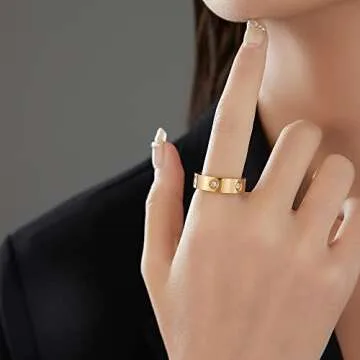 VQYSKO Love Friendship Ring 18K Gold plated Cubic Zirconia Stainless Steel wedding Promise Bands Jewelry Birthday Gifts for Women, Size 6-11 (6mm Golden, 8)