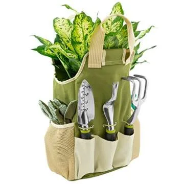 Vremi 9 Piece Garden Tools Set - Gardening Tools with Garden Gloves and Garden Tote - Gardening Gifts Tool Set with Garden Trowel Pruners and More - Vegetable Herb Garden Hand Tools with Storage Tote