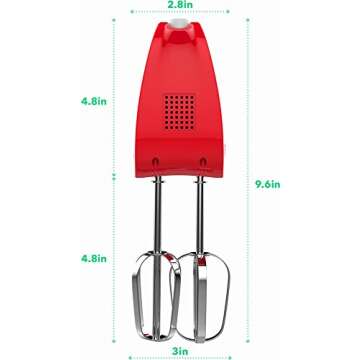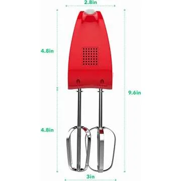 To top it all off, the Vremi mixer is as stylish as it is functional. It measures 7.3 x 2.4 x 4.3 inches and is available in vibrant color options including white with blue, red, pink, or black accents. With a long retractable cord, it ensures space-saving organization in your kitchen, making it the perfect replacement for manual mixers.