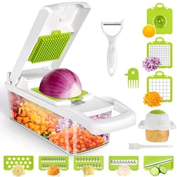 The vegetable chopper features an ergonomic design along with 8 versatile blades that cater to various chopping needs. With three different sizes and five interchangeable blades, you can slice, julienne, grate, or shred effortlessly! Perfect for busy cooks, this multifunctional gadget allows you to create delicious salsa or coleslaw in no time.