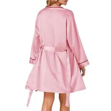 Vrtige Women's 3pcs Satin Silky Pajamas Set with Robe - Elegant Sleepwear in Pink