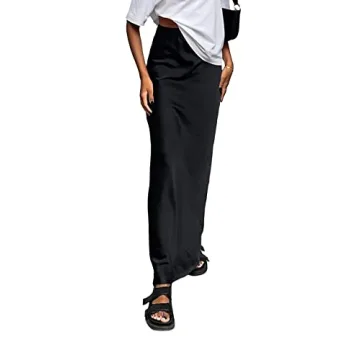 Show moreStep into elegance with the Vrtige Women's Elegant Satin Silky High Waist Zipper Flowy A Line Long Maxi Skirt. Crafted from high-quality satin material, this stunning black skirt is designed to provide both comfort and sophistication. The high waist design accentuates your figure while the solid color adds versatility, making it the perfect addition to any wardrobe. With an ankle-length cut and a flowy hem, this A-line skirt allows for graceful movements, giving you a stylish flair whether you're attending a formal event or enjoying a casual outing.
