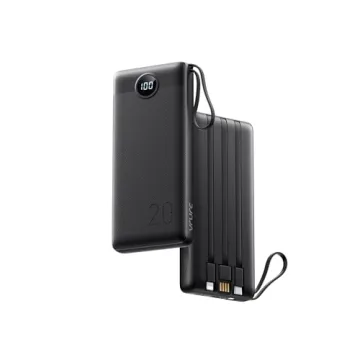 Show moreIntroducing the ultimate VRURC Portable Charger with Built-in Cables, a game-changer in mobile charging solutions. With an impressive 20000 mAh battery, this power bank is designed to empower your devices on-the-go without the hassle of juggling multiple cords. Featuring built-in Micro USB, Type C, and Lightning cables, you can seamlessly charge your smartphone, tablet, and other smart devices, making it an all-in-one solution for your charging needs.