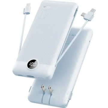 VRURC 10000mAh Portable Charger with Built-in Cables - Blue