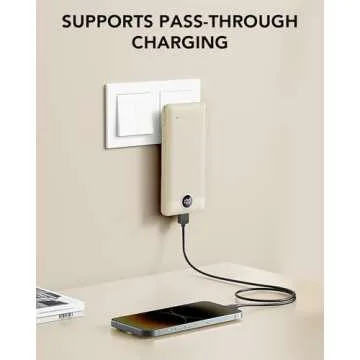 VRURC Portable Charger Built-in Cables and AC Wall Plug, USB C Power Bank 10000mAh, Portable Phone Charger Compact Lightweight External Battery Pack for Smart Phones, Tablets etc-Light Coffee