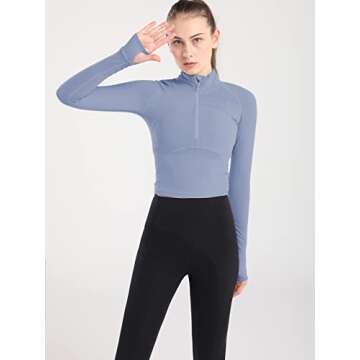 Show moreIntroducing the Vsaiddt Women's Athletic Half Zip Pullover Sweatshirt, a stylish addition to your workout wardrobe that combines functionality with a chic cropped design. This quarter zip pullover, available in a beautiful Serenity Blue, is perfect for women who lead an active lifestyle while wanting to maintain a touch of fashion. Crafted from a blend of 87% Chinlon and 13% Spandex, this pullover is both extremely soft and skin-friendly, ensuring all-day comfort whether you’re at the gym or lounging at home.