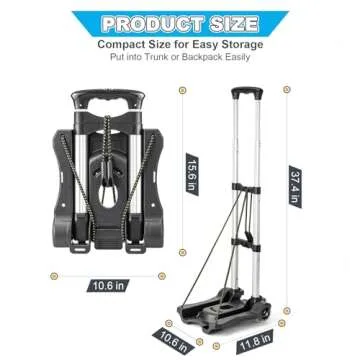 Vsaikeo Small Folding Hand Truck Dolly with 2 Wheels, Lightweight Aluminum Foldable Luggage Cart, Collapsible Cart Portable Dolly for Airport Travel Moving Use