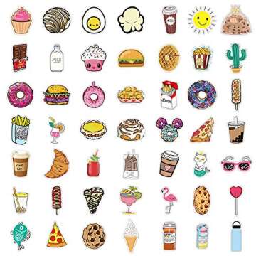 Vsco Cute Food Stickers for Water Bottles 100 Pcs Waterproof Aesthetic Trendy Stickers for Teens Kids Girls and Boys, Perfect for Laptop Notebook Tablet Phone Car Travel Extra Durable 100% Vinyl