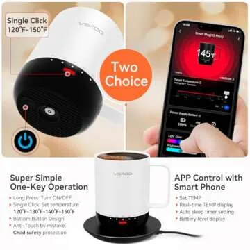 In the saturating market of smart mugs, the VSITOO S3 Pro rises above the rest with its remarkable battery life and adjustable temperature range. Unlike many competitors, this mug allows dual control via both a manual button and a smartphone app. Its innovative battery technology ensures a longer life, and the premium build quality makes it a standout choice for smart drinkware.