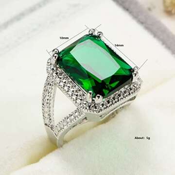 Vsoruln Emerald Halo 925 Sterling Silver Ring with Green Gemstone