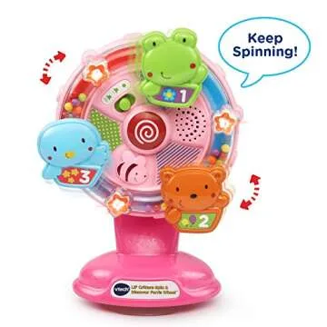 Show more Introducing the VTech Lil' Critters Spin and Discover Ferris Wheel in captivating pink—an enchanting toy designed to create lasting memories and promote early learning for your child. This delightful Ferris wheel stands out with its exceptional combination of education and entertainment, making it the perfect addition to any child’s playroom or high chair. With its vibrant colors, cheerful melodies, and engaging features, this toy captures attention while nurturing important developmental skills. Your little one will be captivated as they discover numbers, colors, and animals through playful interaction!