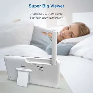 Show more Introducing the VTech RM7764-2HD 1080p Smart WiFi Remote Access 2-Camera Baby Monitor, a state-of-the-art monitoring solution designed for modern parents who value connectivity and functionality. This advanced baby monitor features dual high-definition cameras that provide 1080p FHD Remote and 720p HD Local viewing, ensuring you never miss a moment of your baby’s activities. With seamless transitions between the included 7-inch color LCD display and your smartphone or tablet, this versatile system caters to every monitoring preference—whether you're at home or on the move.