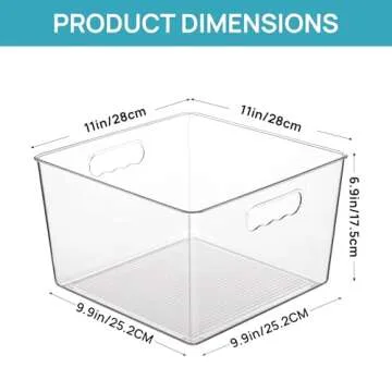 Show moreIntroducing the Vtopmart 6 Pack Extra Large Clear Plastic Storage Bins – your perfect solution for a clutter-free and organized home! Designed to revolutionize your storage game, these versatile bins are not just for pantries; they can be utilized in closets, cabinets, kitchens, bathrooms, laundry rooms, and even under sinks. The clear acrylic design allows you to effortlessly view contents without rummaging through stacks, saving you precious time and helping you stay organized. With dimensions of 11"L x 11"W x 6.9"H, these square containers pack a punch in both capacity and functionality.