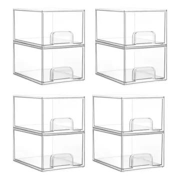 Vtopmart 8 Pack Clear Stackable Storage Drawers, 4.4'' Tall Acrylic Bathroom Makeup Organizer,Plastic Storage Bins For Vanity, Undersink, Kitchen Cabinets, Pantry, Home Organization
