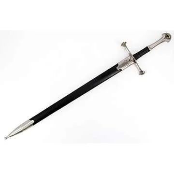 Every detail of the sword, from the rattail tang to the faux leather-like quality of the scabbard, has been crafted with care and precision. Enjoy the admiration of friends and family as you showcase this magnificent sword, evoking visions of legendary knights and epic battles. Don't miss out on adding this exquisite piece of history to your arsenal!
