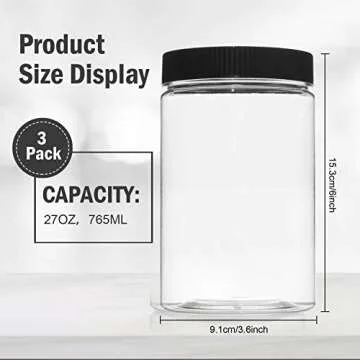 Vumdua 27 Ounce Plastic Jars with Lids, 3 Pack Food Storage Containers Airtight, Clear Containers for Organizing