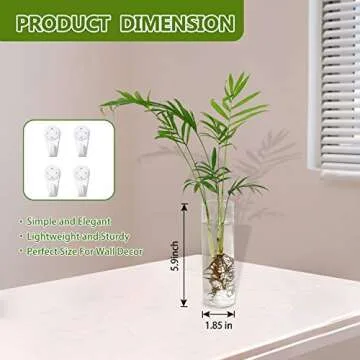 Show more If you’re a plant lover or a gardening enthusiast, the Vumdua 4 Pack Glass Planters are a must-have addition to your home decor. Crafted from premium high boron silicon heat-resistant glass, these planters are designed to be both durable and stylish. Each planter measures 5.9 inches high with a diameter of 1.85 inches, making them ideal for showcasing your favorite water plants, fresh flowers, or air plants. The set includes four glass planters, each equipped with no-mark hooks for a hassle-free installation. Whether you're looking to elevate your interior design or start a DIY propagation station, these elegant planters offer the perfect blend of functionality and aesthetics.