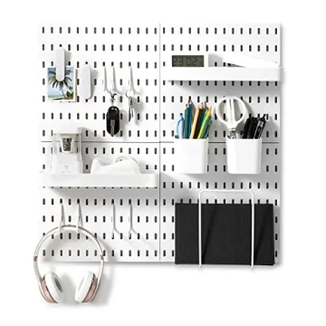 Show moreThe VUSIGN Pegboard Combination Wall Organizer Kit is your ultimate solution for efficient wall organization. This versatile system features four interlocking pegboard panels that can be seamlessly combined to create a robust 22 x 22-inch display area. Perfect for transforming any space, this pegboard kit is ideal for bedrooms, home offices, craft rooms, and more. With a stunning, sleek white finish, it adds both functionality and style to your walls. Designed with versatility in mind, the kit provides numerous configuration options to meet your unique organizational needs.