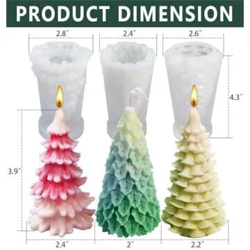 VUTEHO 3PCS Christmas Tree Candle Molds Silicone, DIY Christmas Tree Candle Molds for Candle Making Wax Soap Polymer Clay Plaster Epoxy Resin, Tree Shape Silicone Moulds for Christmas Gifts Home Decor