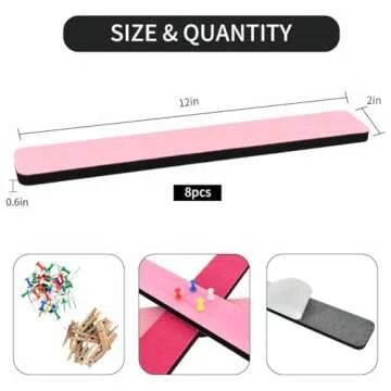 Vuzvuv 8Pcs Mixed Pink Cork Board Bar Strips with 50 Pushpins & 10 Wooden Clip Pushpins, Self-Adhesive Bulletin Board Strips for Wall, Felt Pin Board for Schedules Offices Home