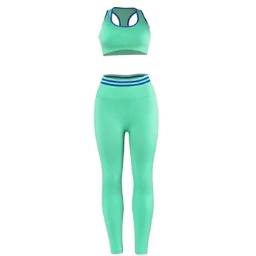 Made from a premium blend of breathable and stretchable fabric, this workout outfit provides ultimate comfort while ensuring durability. The seamless design reduces chafing and irritation, allowing you to focus entirely on your performance. The bra offers excellent support while maintaining a sleek look, and the high-waisted leggings provide just the right amount of coverage and confidence during your workouts. With a variety of trendy colors available, you can wear this suit set confidently in or out of the gym.