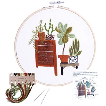 VZZBOO Embroidery Starter Set - All-in-One Plant Design Kit for Beginners