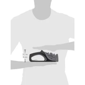 With a rubberized base, this sharpener provides a sure grip, preventing any slippage during use, while its weighted design ensures that it remains safe and secure on your countertop. This combination of functionality and thoughtful engineering makes it an essential tool for both novice cooks and professional chefs alike.