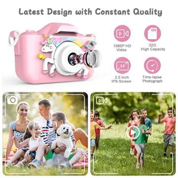 Waayu Unicorn Kids Digital Camera for Girls - 1080P Dual Lens, 32GB SD Card, Perfect Birthday & Christmas Gifts