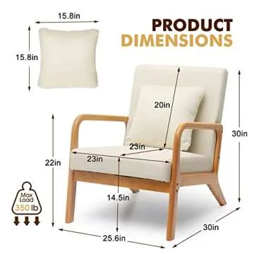 Elevate your home decor with the WACASA Accent Chair, a perfect blend of style and comfort designed to enhance any space, from your cozy living room to your serene reading nook. Crafted with a soft beige cushion and a sturdy solid wood frame, this mid-century modern chair not only adds a touch of elegance but also promises durability. At 25.6 inches wide and 30 inches deep, its spacious seat is designed for those who love to sink in and relax, whether you're sipping your...