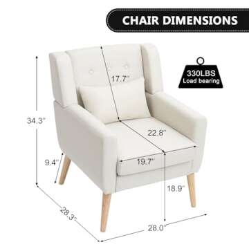 Show moreIntroducing the WACASA Mid Century Modern Accent Chair, a perfect blend of style, comfort, and functionality. Designed with a chic accentuated touch, this chair serves as an ideal addition to any living space. Upholstered in premium linen fabric, this chair not only provides aesthetic appeal but also features a high-density sponge filling that envelops you in cozy warmth, making you feel truly embraced. The robust wooden legs promise durability, while the elegant button tufting adds a sophisticated flair to your home décor. At a size of 28"W x 28.3"D x 34.3"H, it's compact enough for smaller spaces yet spacious enough to provide ample support for everyday use.