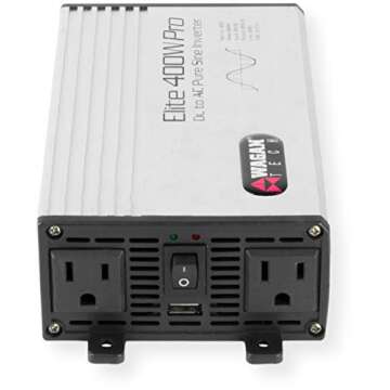 Wagan 2601 Elite 400W Pro Pure Sine DC to AC Power Inverter, 400W of True Rated Power, 800W Surge Power, USB Power Port, Pure Sine Wave, Thermal Cooling Fan with Automatic Shutdown