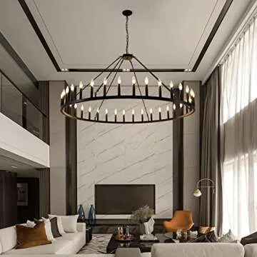 Why You Will Love This Product? You will fall in love with the way this chandelier transforms your space, creating an inviting and cozy atmosphere that encourages family gatherings and friendly conversations. The elegance of the wagon wheel design adds a touch of rustic charm to your home, while the substantial lighting coverage efficiently brightens your environment. The satisfaction guarantee means you can purchase with confidence, secure in the knowledge that your investment is protected. Enjoy the harmonious blend of style, functionality, and quality with this remarkable chandelier!