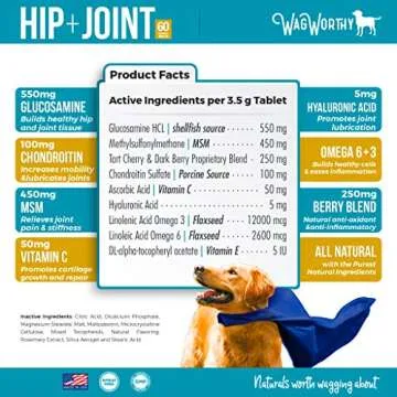 WagWorthy Naturals Advanced Hip and Joint Supplement for Dogs with Chondroitin, MSM and Glucosamine for Dogs, Improves Mobility, Arthritis Pain Relief for Dogs, 60 Chewable Tablets, Made in USA