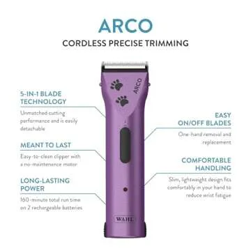 Wahl Professional Animal Arco Pet, Dog, Cat, and Horse Cordless Clipper Kit, Purple (8786-1001)