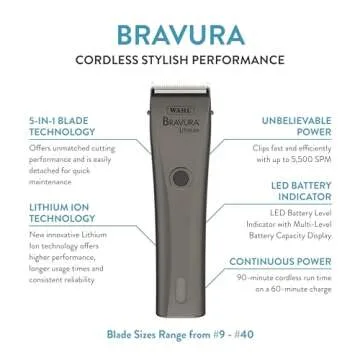 What sets the Wahl Bravura apart is its state-of-the-art technology that guarantees a cool, quiet grooming experience. This significantly lessens anxiety for pets who may be stressed by the grooming process. Join the countless satisfied pet owners who have made the switch to these clippers, relishing in the benefits of **powerful, sharp, and efficient trimming** that turns grooming from a chore into a cozy bonding moment for you and your furry friend.