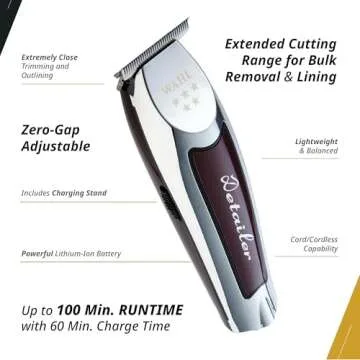 Wahl Professional Cordless Detailer Li T Wide Blade Lithium Ion Battery 100 Min Runtime