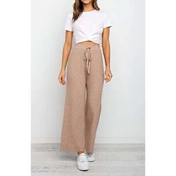 Show moreIntroducing the Waitfairy Womens Solid Rib Knit Wide Leg Pants—a must-have in your wardrobe that perfectly combines comfort and chic style. Made from 100% premium acrylic, these luxurious pants are designed to provide ultimate softness while being versatile enough for year-round wear. The flowy, open-bottom design makes them an effortless choice that seamlessly transitions from casual outings to stylish gatherings, making them ideal for anything from brunch dates to shopping trips. With their flattering silhouette and trendy appeal, these pants are sure to become your go-to choice.