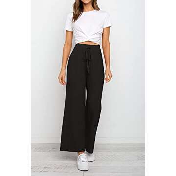 Show moreStep into unparalleled comfort and style with these stunning Womens High-Waisted Rib Knit Wide Leg Pants. Designed with a unique open bottom flowy design, these pants offer a chic silhouette that elevates any outfit. Crafted from 100% acrylic fabric, they guarantee a super soft feel that you'll want to wear all year round. The coveted covered elastic waistband with drawcord ensures a snug fit that hugs your curves beautifully, making you feel confident and stylish. Perfect for any occasion, they adapt seamlessly to both flats, heels, and sneakers, making them ideal for everything from lounging at home to running errands.