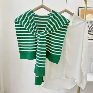WaJuemy Women's Sweater Scarf with Sleeves Knitted Sweater Shawl Wrap Casual Tie Shoulder Collar Cape Wraps (Green/White)