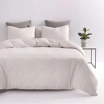 Wake In Cloud - Striped Comforter Set, Ticking Stripe Vertical Pinstripe Neutral Farmhouse Pattern Printed, Soft Lightweight Bedding, 3 Pieces, Beige, Queen Size
