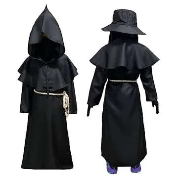 Crafted from high-quality materials, the costume features a durable yet comfortable robe and hat made from lightweight fabrics, ensuring that your little one stays comfortable even through long hours of festivities. The eerie leather plague mask is not only realistic but also adjustable, providing a snug fit that enhances the overall effect. Each piece, from the glove designs to the cross necklace, has been meticulously crafted to give your child a striking presence reminiscent of historical hauntings.
