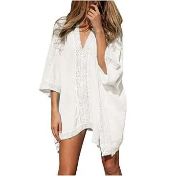 Walant Womens Solid Oversized Beach Cover Up Swimsuit Bathing Suit Beach Dress,White,One Size