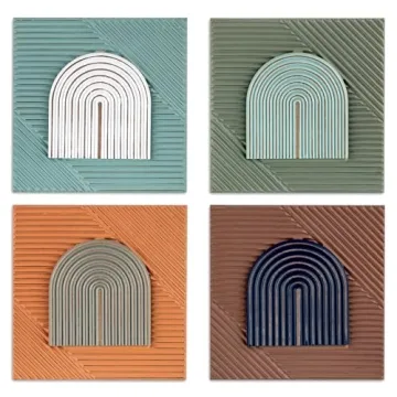 Show more Introducing the Walasis Boho Wall Decor Mid-Century Artwork – a stunning addition to your home that effortlessly combines modern artistry with a touch of rustic charm. Crafted with precision, this wall art set showcases a beautiful blend of vibrant colors such as green, white, orange, blue, gray, and brown, enticing the eye and enlivening any room. Each piece is designed with a unique 3D distressed square pattern, set within a sturdy wooden frame, which enhances its artisan feel and makes it a perfect fit for both rustic and modern interiors. Measuring 9.5 inches in length and 0.8 inches in thickness, this versatile artwork can be displayed horizontally or vertically, allowing for a customizable gallery-style arrangement that suits your personal taste.