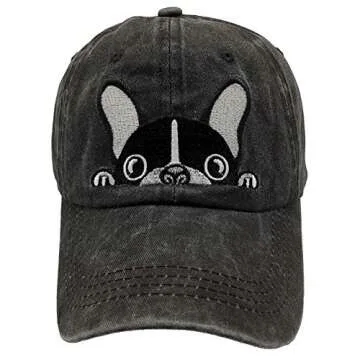 Waldeal Mens Embroidered Boston Terriers Hat - Adjustable Washed Bulldog Baseball Cap