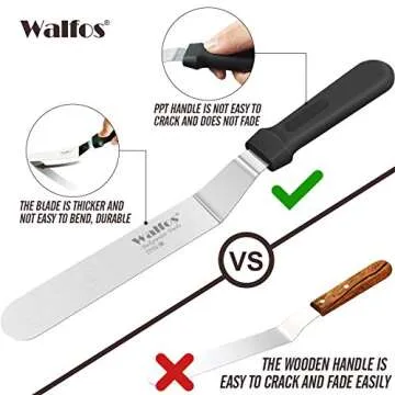 Compared to other spatulas on the market, the Walfos Icing Spatula Set stands out due to its combination of strength, durability, and ergonomic design. Many branded spatulas often use low-quality materials that deteriorate over time, whereas Walfos uses premium stainless steel that provides a long-lasting performance. Additionally, many competitors lack the multi-purpose application that the Walfos spatulas offer, making them less useful for diverse baking needs. The unique non-slip handle, paired with dishwasher compatibility, positions Walfos as a top contender in kitchen tools.