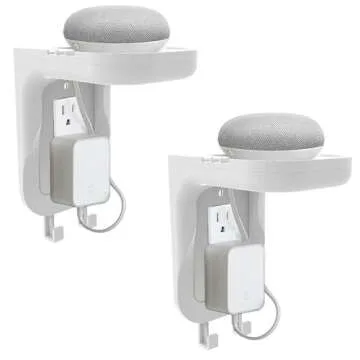 WALI Outlet Shelf Wall Holder, fit for Duplex GFCI Decorative Outlet, Bedroom Outlet Shell A Space Saving for Smart Home, Speakers up to 20lbs with Cable Management (OSH002-W), White