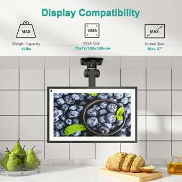 WALI Under Cabinet Mount for Echo Show 21, Echo Show 15, Height Adjustable and Foldable Mounting Bracket, Tilt Swivel for Alexa Echo Show 21, Echo Show 15, Holds up to 44lbs (ECS001), Black